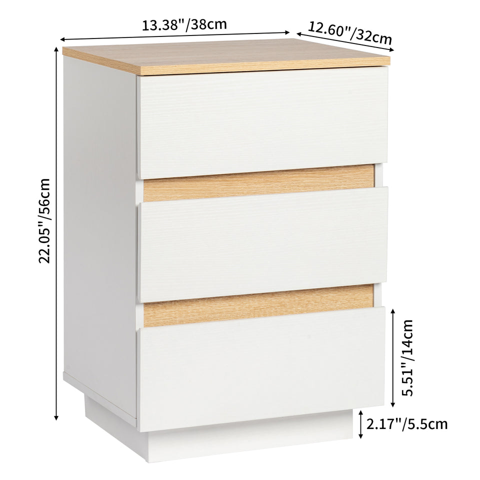 Modern 3 Drawer Bedside Table – White and Oak Effect Minimalist Storage